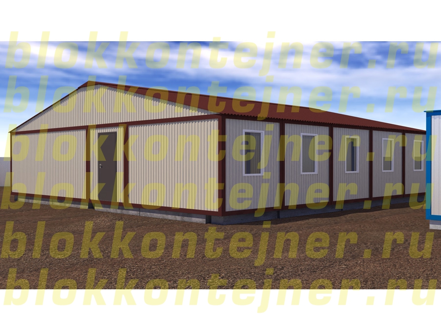 Модульное одноэтажное общежитие из 10 шт 5м блок-контейнеров, с коридором 1м